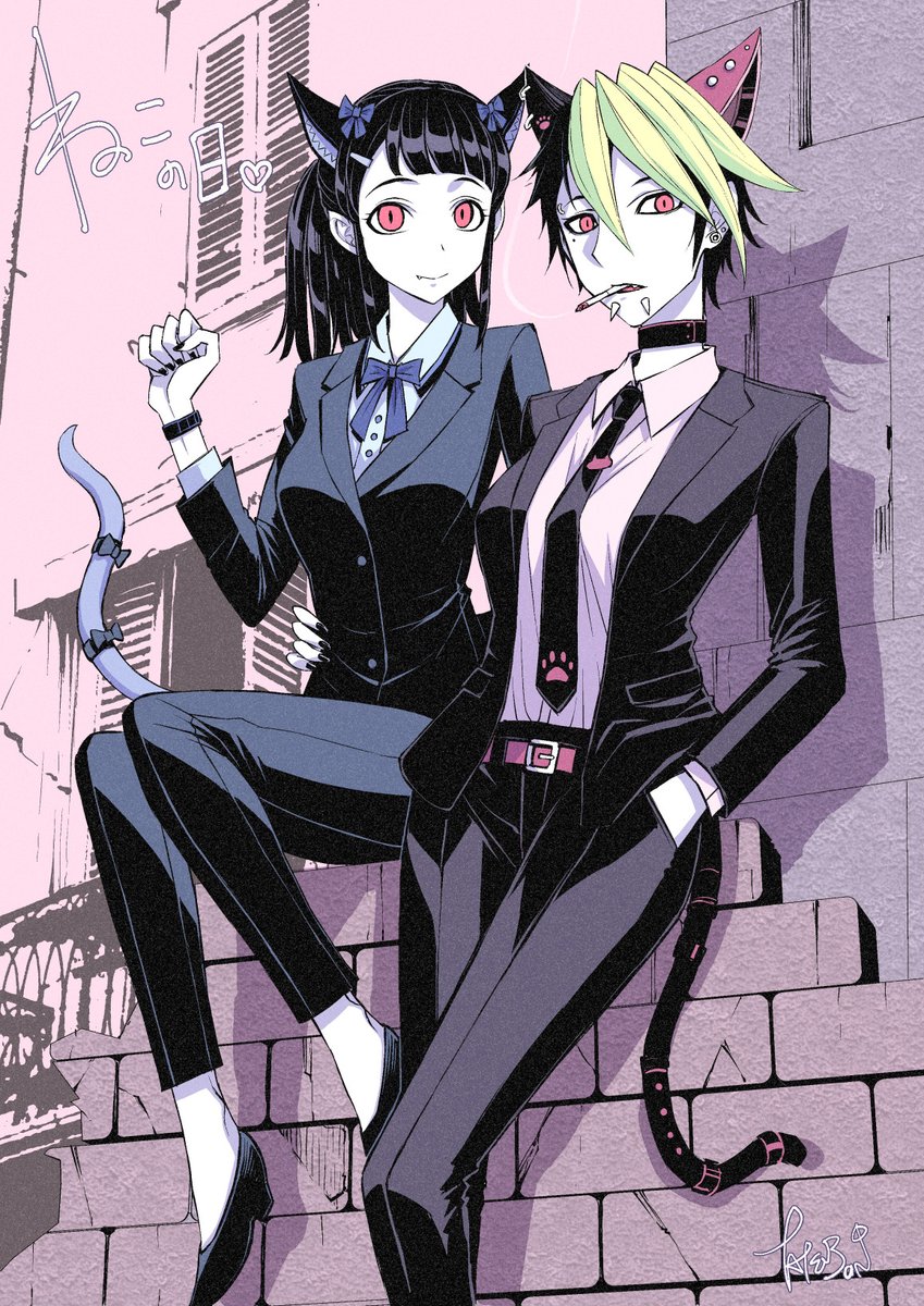 ヴァンパイア百合っぷるで猫耳&スーツ❤ #猫の日