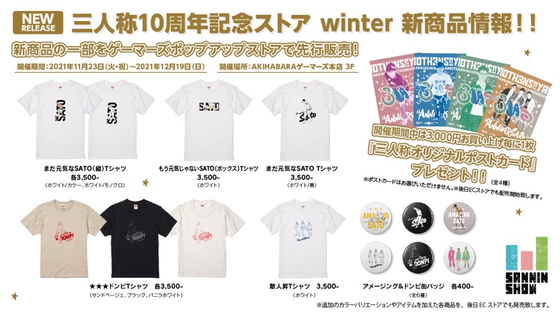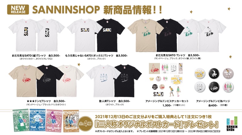 SANNINSHOPにて新しいグッズが販売されましたー。アメージングでドンピなものが沢山ありますので、よろしければ覗いてみて下さいなー。