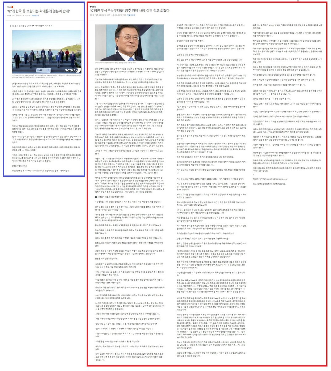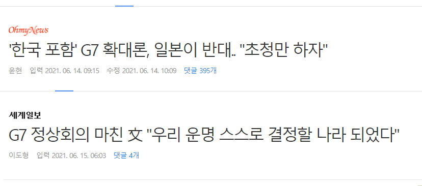 친일보수족벌언론에서, 한국 대통령이 참석한 G7 회의 뉴스가, 한국 대통령이 참석하지 않았던 G7때보다 적은 건..