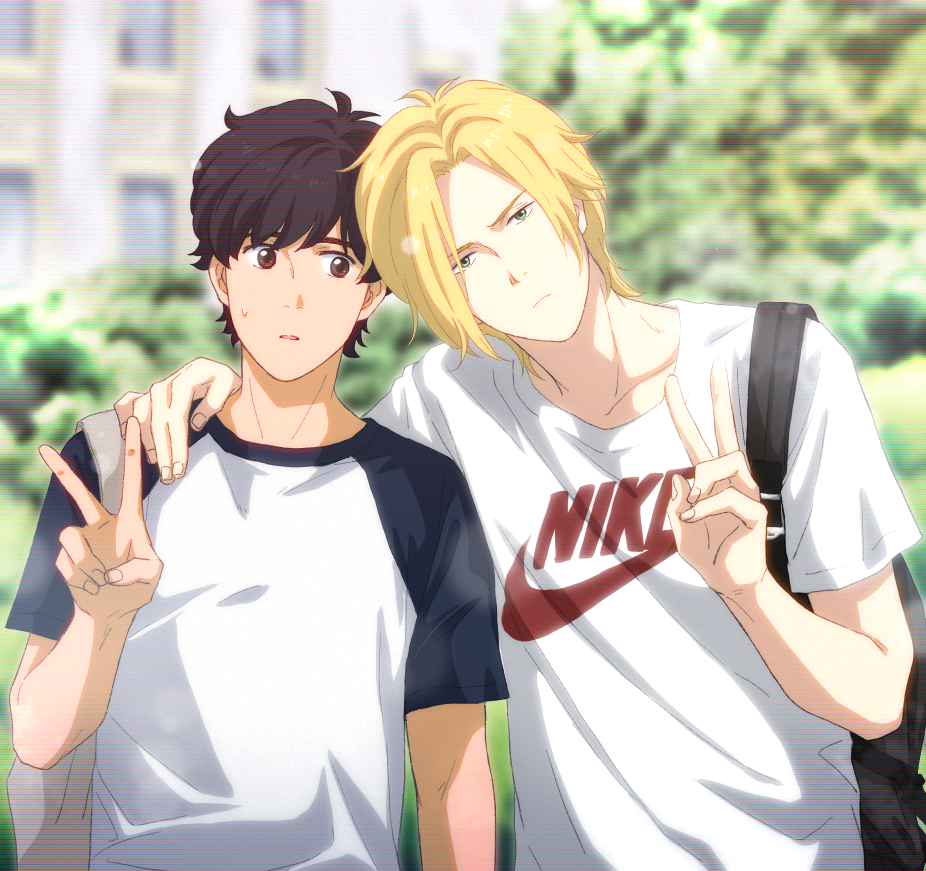 学パロ~幼馴染でも転生でも…アッシュは英二の最強セコム💪… 描いたはいいが何かと重なってお蔵入りしてたA英です。バナナの日にかこつけてしれっと供養…