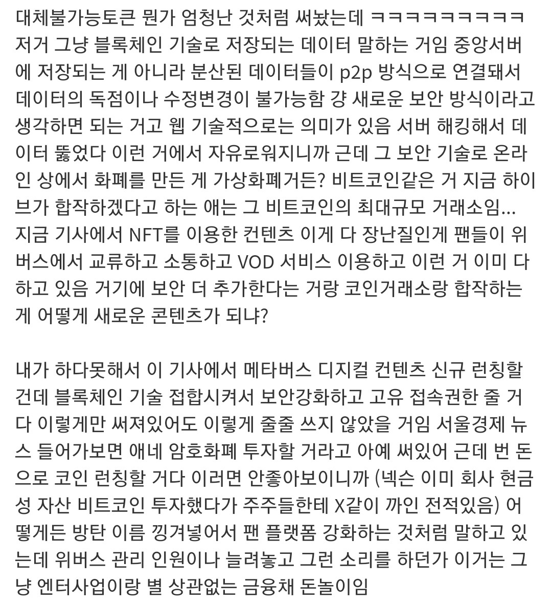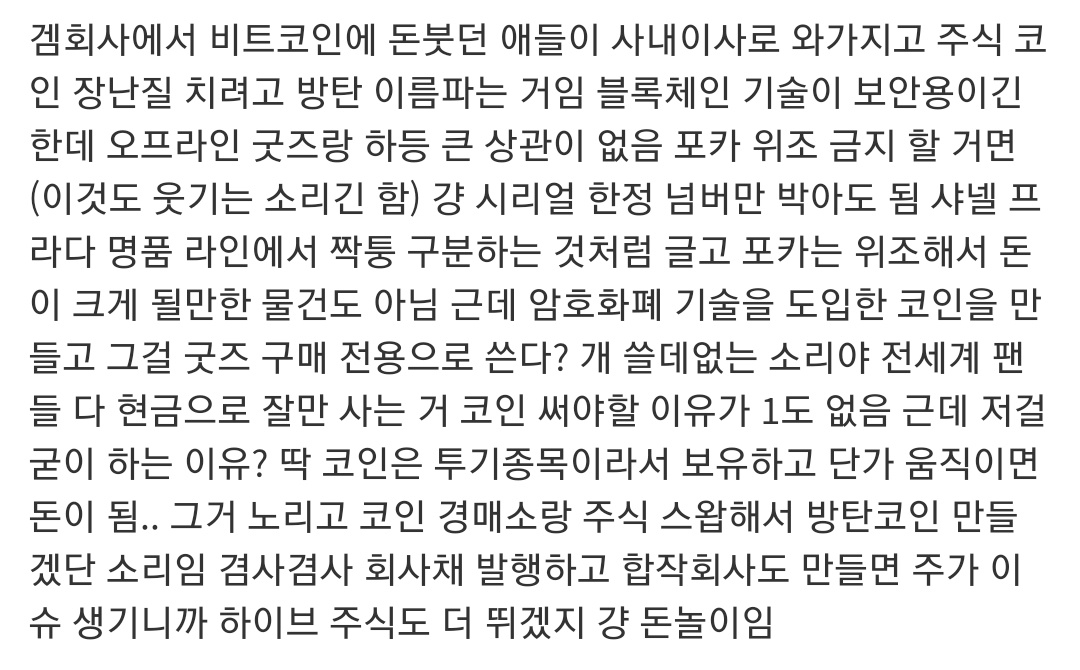 하루가 멀다하고 공계에 올라오는건 팔이 뿐인 하이브를 어떻게 안패요