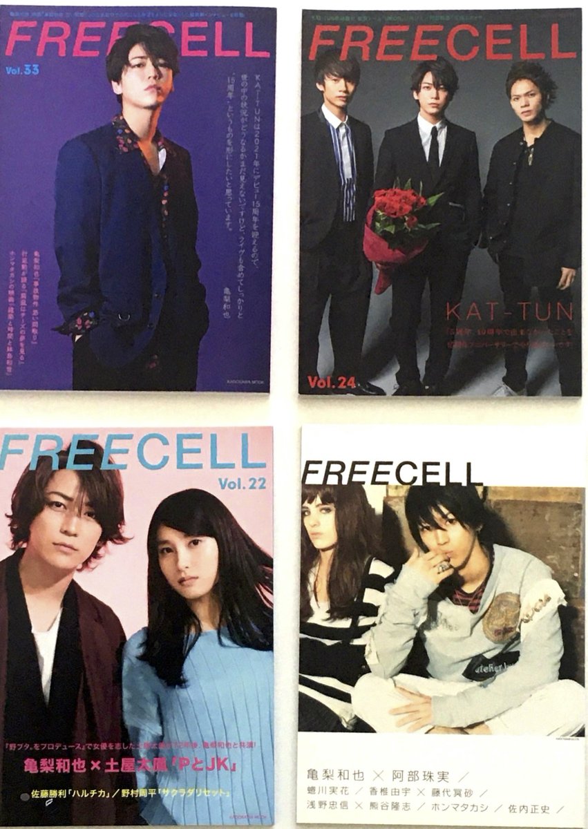 FREECELL vol24アマゾン在庫復活しました。表紙のKAT-TUNの赤い薔薇は咲いた薔薇10本に蕾の薔薇でKAT-TUNの未来へエールを送ってます。阿部顕嵐さんはメンバーカラーのバックプリント紙で遊んでもらうコンセプトです!