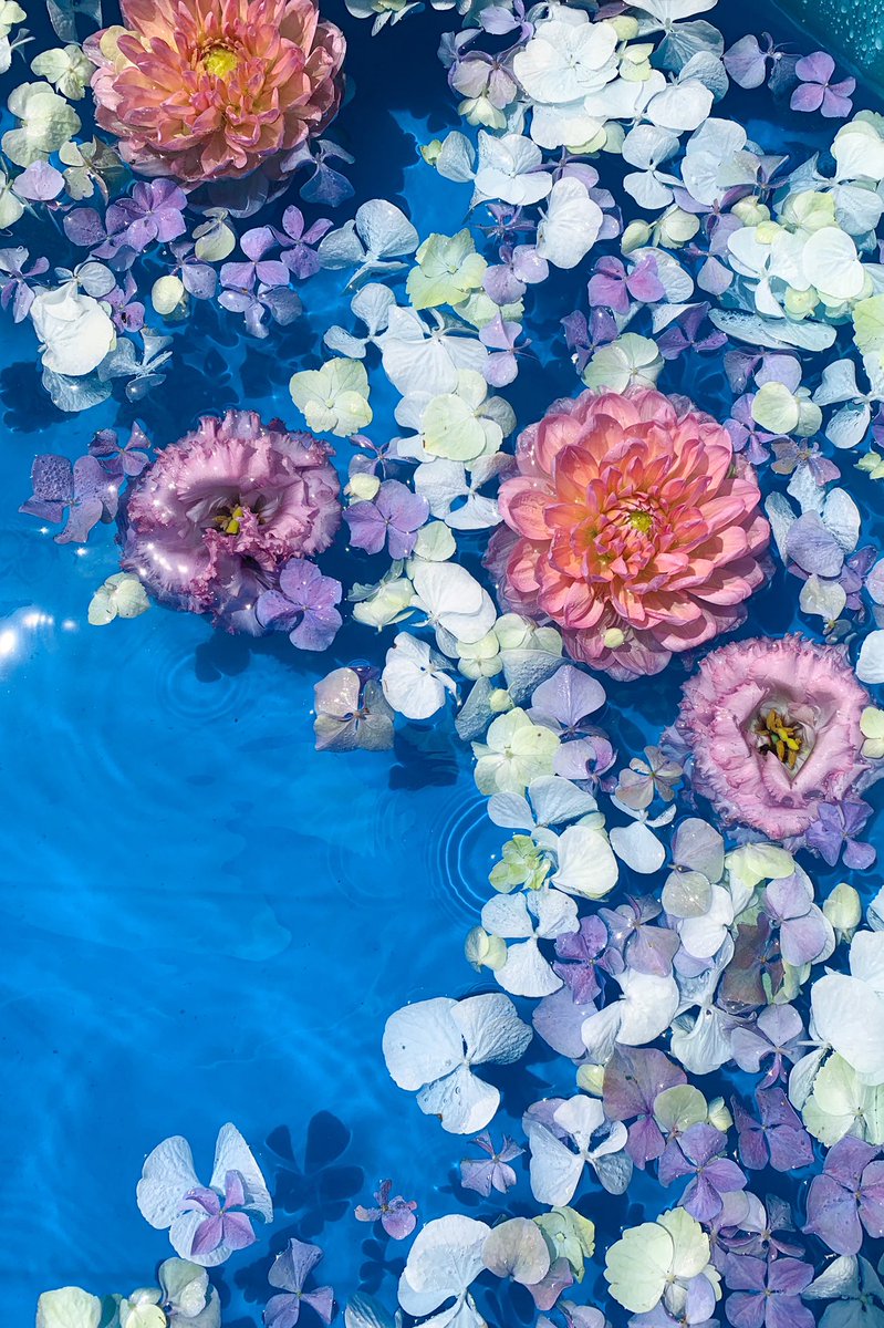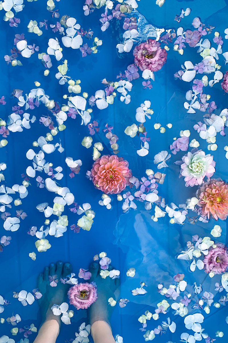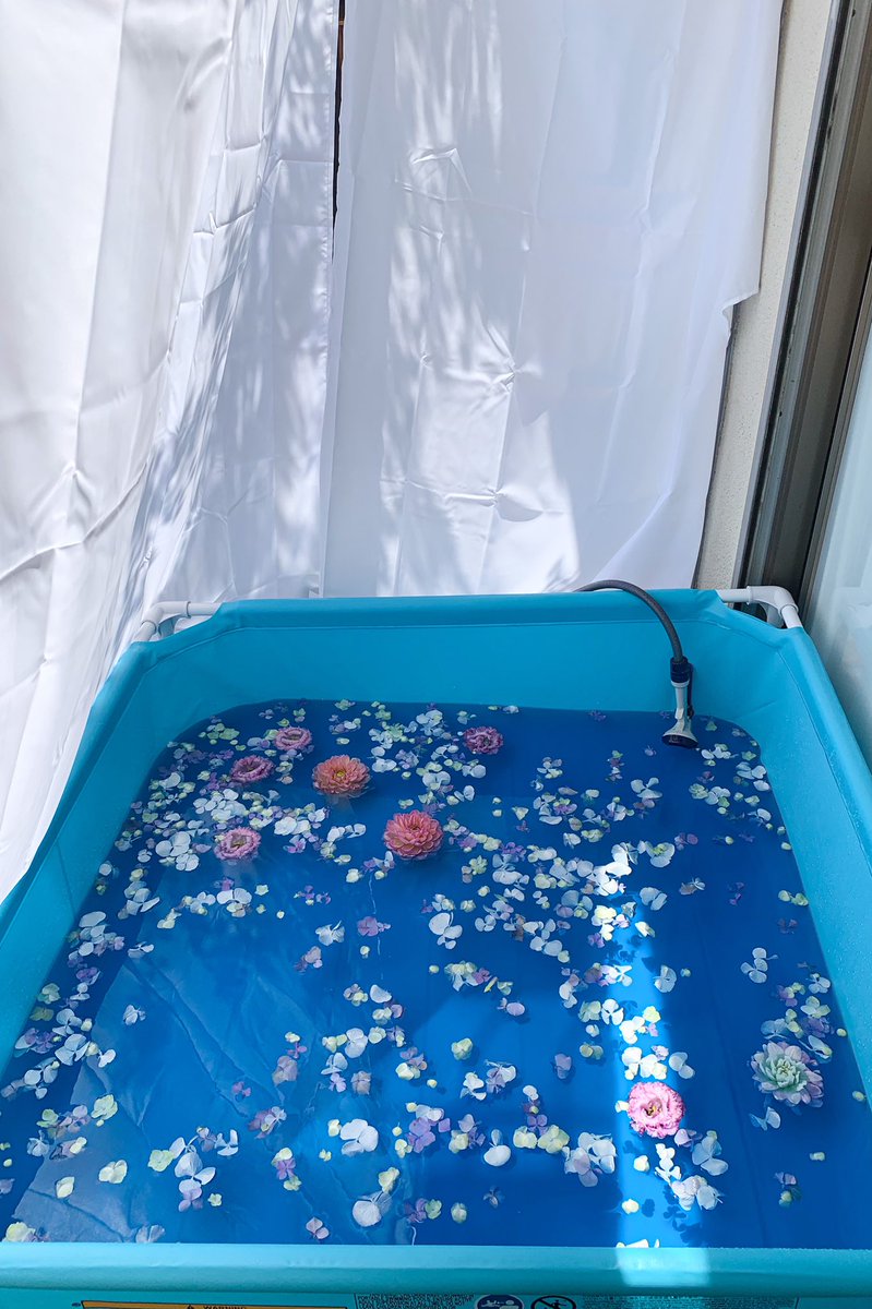 あまりの暑さにスタッフが庭の縁側にプールを導入しました☀️