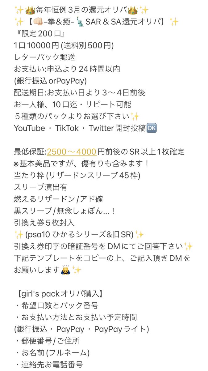 ✨👑毎年恒例3月の還元オリパ👑✨