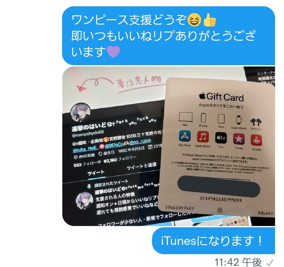 iTunesほしい人! 通知オン+いいねしてくれる人だけ優先支援してます💜