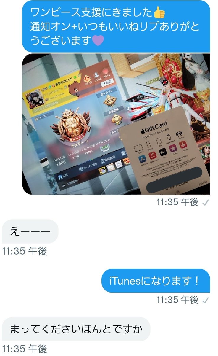 今日のワンピース支援iTunes×2名! 通知オンしてる人に支援します👌