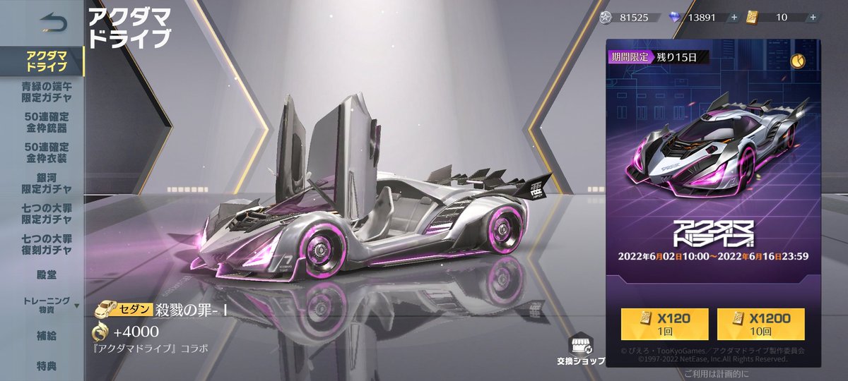 銀河ガチャのセダンかっこいい みんな回す?