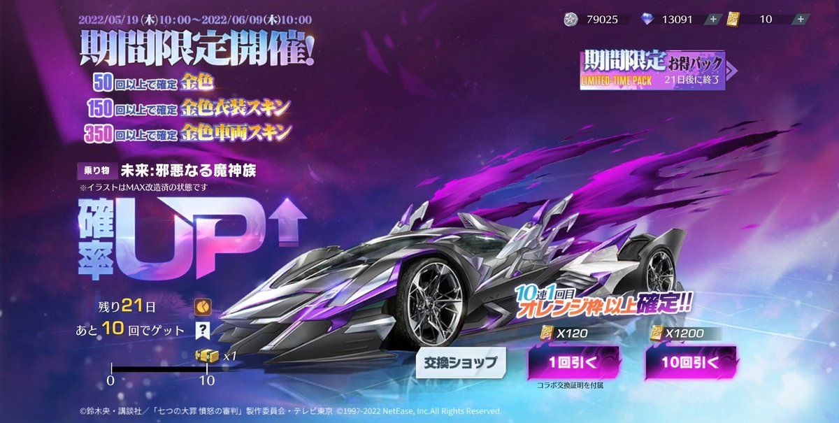 七つの大罪復刻きたぁーーーー! ガチャ回したい人いいね👍 リプでほしいスキン教えて💜