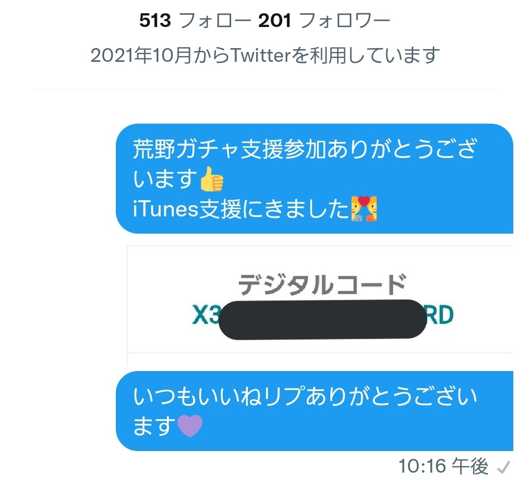荒野ガチャ支援始まってます💜 iTunes・Google・PayPay対応👍 通知オン+いいねリプしてくれるフォロワーさん優先支援💑