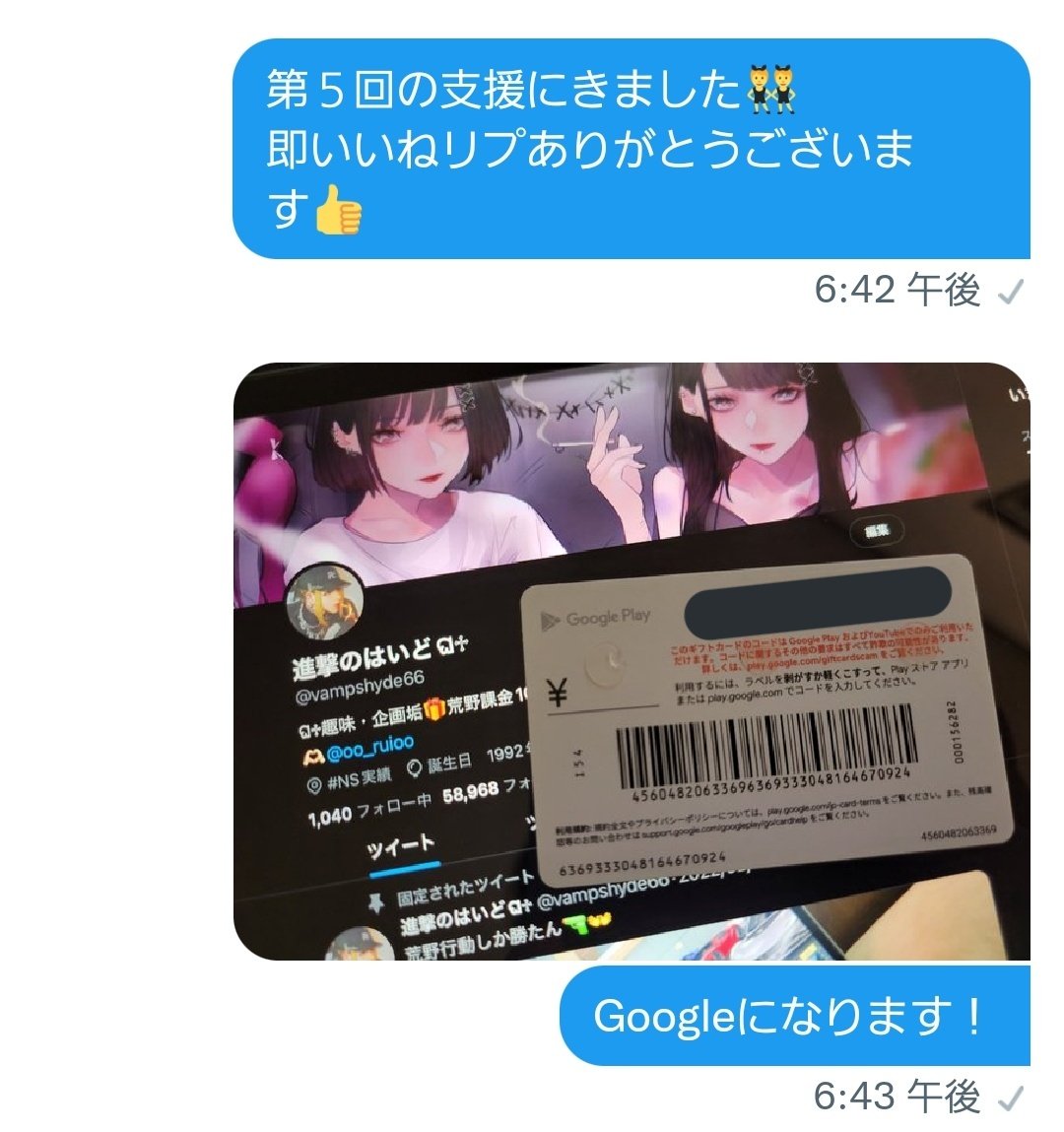 第5回支援してきました👍 通知オン+いいねくれる人優先支援してます💑 新規フォローやフォロワー少ない人でも支援あります💜 iTunes・Google・PayPay対応します💱