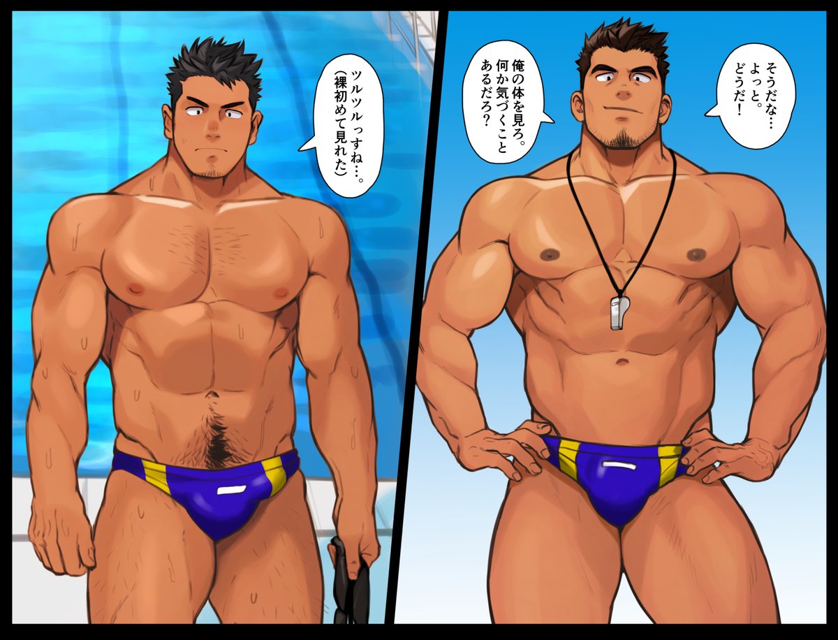【深夜2時のジムにて】 ジムで出会った男2人の絵を描きました。 年上マッチョに誘惑されるヤツです。