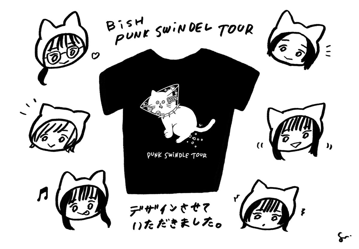 前回TシャツデザインさせてもらったのがIDOL SWiNDEL TOUR、今回がPUNK SWiNDEL TOURということでお声がけいただきました。いぇーい✌️✌️自分の中のパンクの引き出しがNANAしかなくてむずかしかったけどがんばりました。解散前にまたBiSHと関われてうれしかったです。皆さん100枚ずつ買ってください!