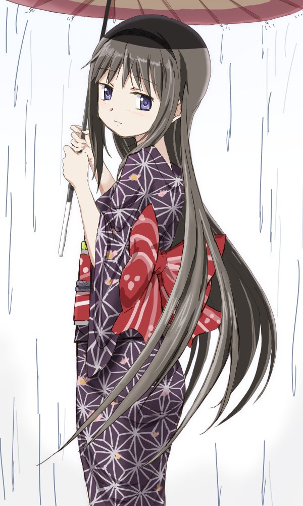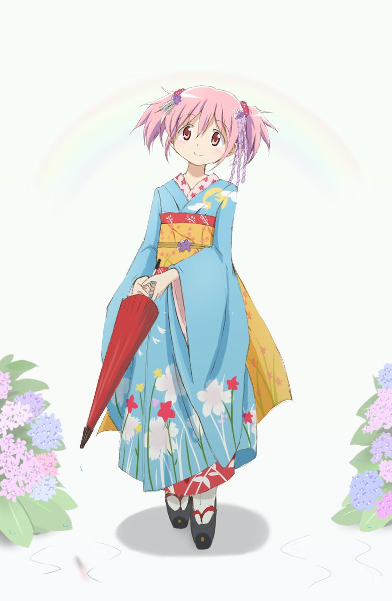 晴れ着ではありませんが、昨年夏に描き上げた和装のほむほむ。(雨ありver.)