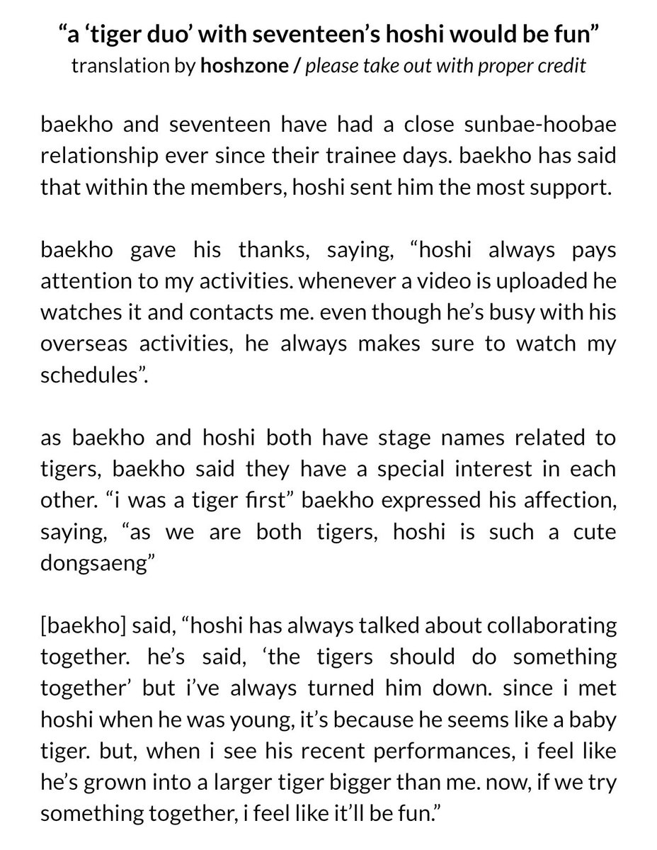 “since i met hoshi when he was young, it’s because he seems like a baby tiger. but, when i see his recent performances, i feel like he’s grown into a larger tiger bigger than me. now, if we try something together, i feel like it’ll be fun”