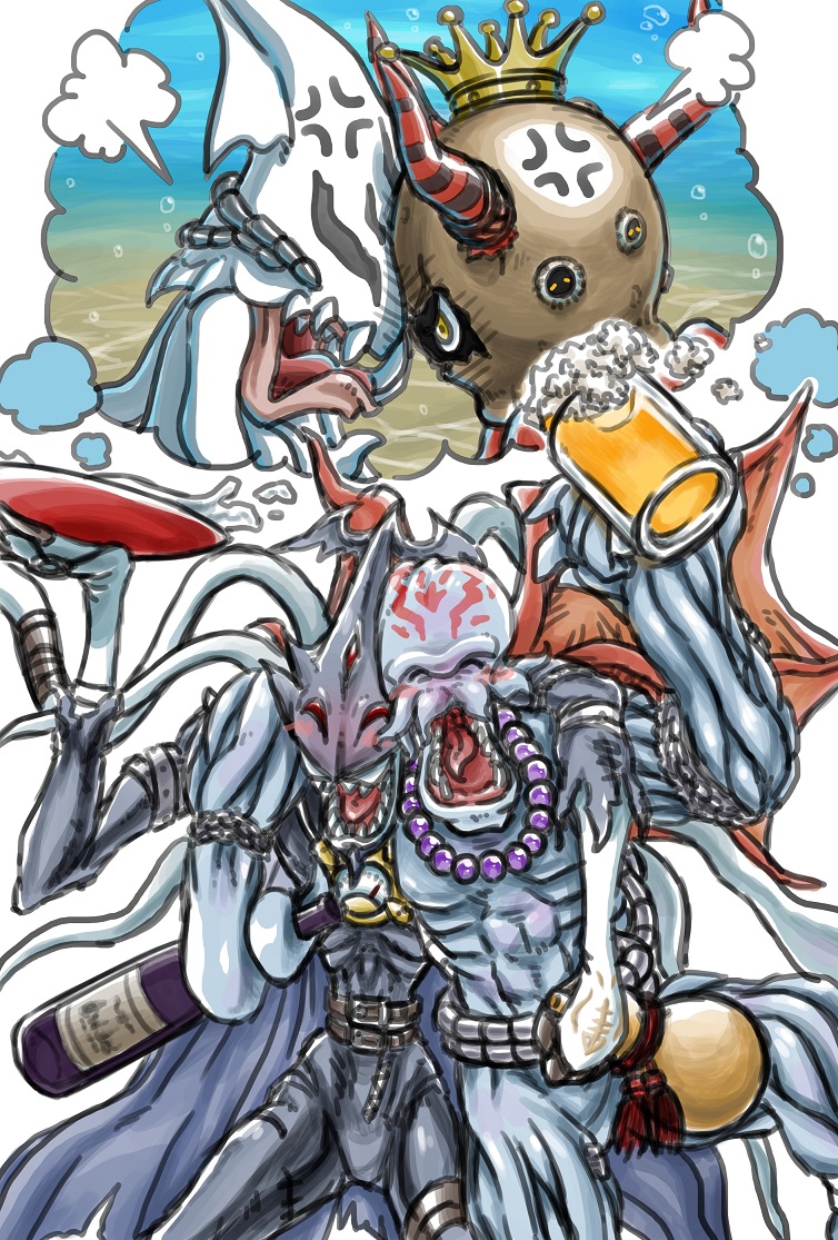 今週のお絵かき! 「昔の事なんて水に流そうや!」 水棲デジモンだけにね♪ (しかしアルコールだ)