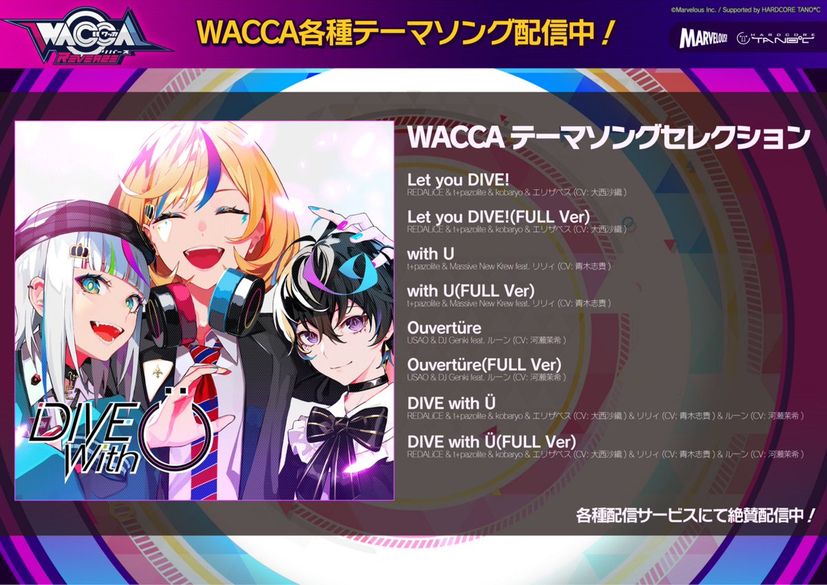 本日よりWACCAのテーマソング各種のデジタル配信がスタート!