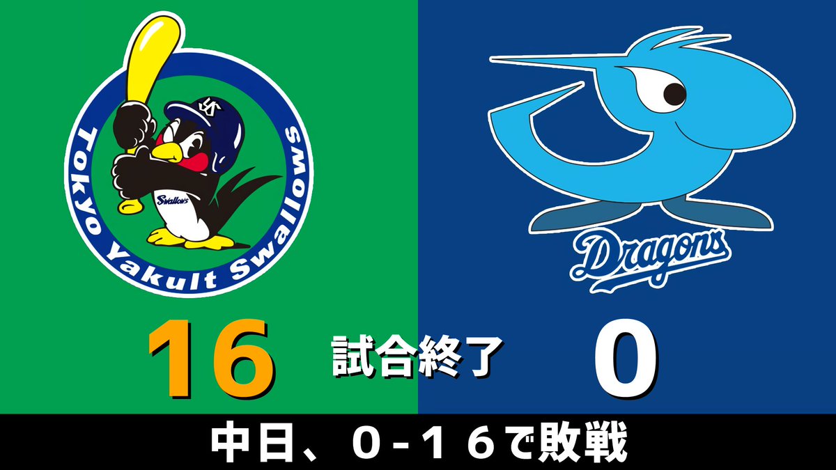 中日ドラゴンズ、0-16で敗戦です。