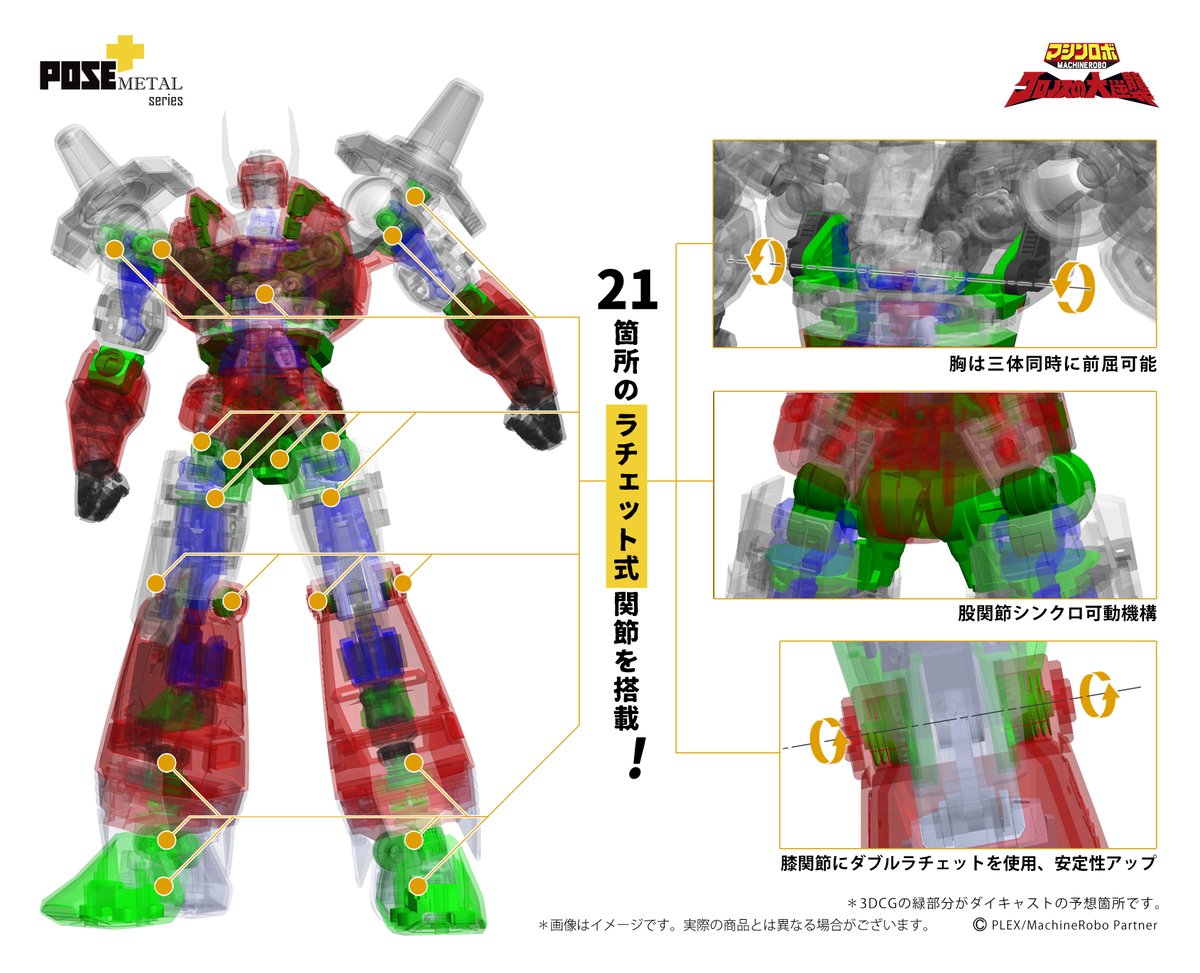 21箇所にラチェット式関節を搭載!