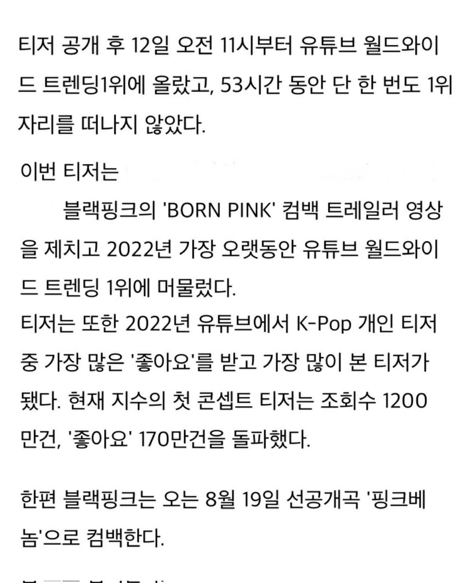 '이번 티저는 2022년 가장 오랫동안 유튜브 월드와이드 트렌딩 1위에 머물렀다.'
