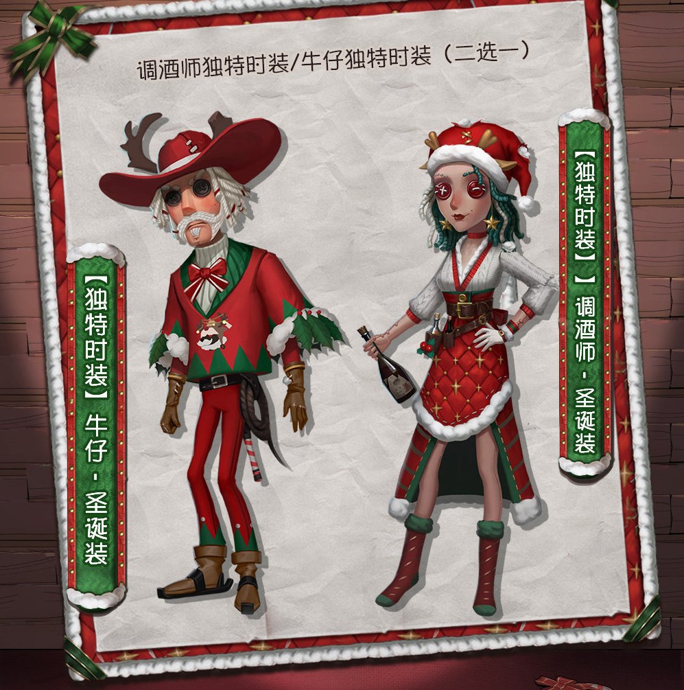 【クリスマスイベント】 〇 ショップ販売 断罪狩人SSR衣装(期間限定) 〇 イベント報酬 アイコン/枠、携帯品 カウボーイ/バーメイドSR衣装(どちらか1人)