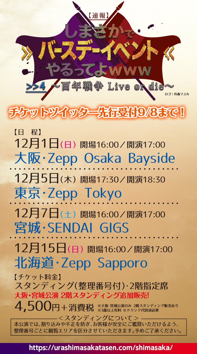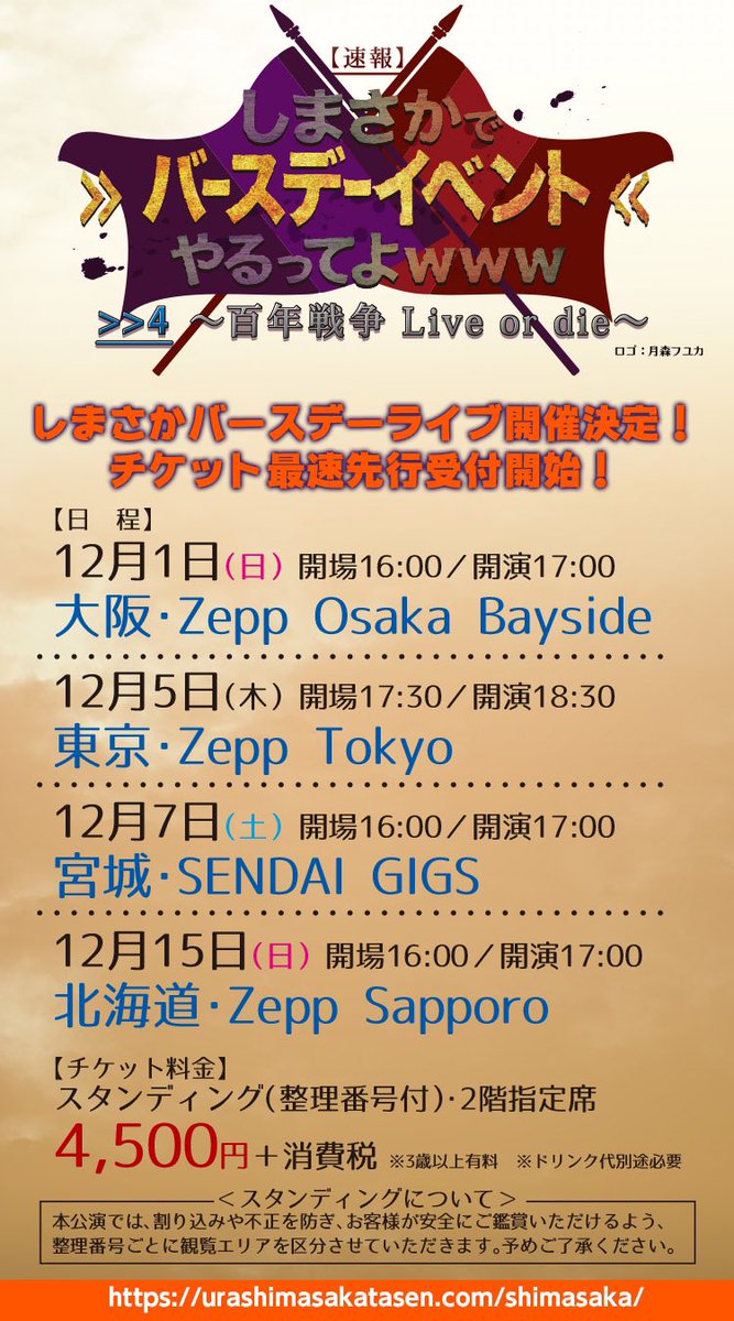 【しまさかバースデーライブチケット情報!】