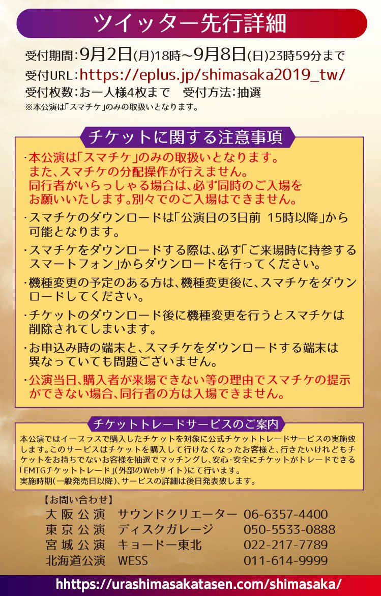 受付URL:eplus.jp/shimasaka2019/…