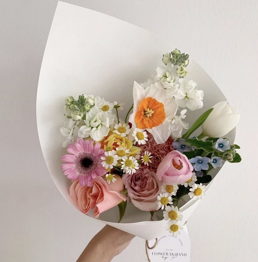 ร้านแรกที่ชอบมากๆ คือ flower in hand by p รู้สึกเค้าเลือกสีดอกไม้ได้น่ารักสวยสดใส เวลาอยู่ด้วยกันมันมันแบบ 🥺🤏🏻✨ ส่วนตัวชอบช่อที่เค้าเอาดอกไม้หลายๆชนิด แบบหยิบมาอย่างละดอกสองดอกแล้วเอามาปนกัน มันสวยมากๆๆๆ instagram.com/flower_inhand?…