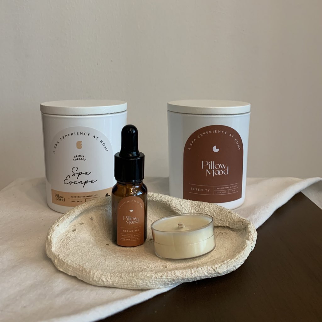 มาสนับสนุนแบรนด์ไทยกัน จุดแล้วหอมไปทั้งห้องจริงๆ เทียนของร้าน pillowmood.th เป็นอารมณ์หอมแบบผ่อนคลายมากๆ กลิ่นไม่ฉุน ให้ความรู้สึกเหมือนอยู่สปาจริงๆ จุดก่อนนอนหรือตอนทำงานรู้สึก relax เราใช้กลิ่น spa escape และ senerity ✨🥺 packaging ต่างๆคือสวยminimal ตั้งตรงไหนก็ดูดี