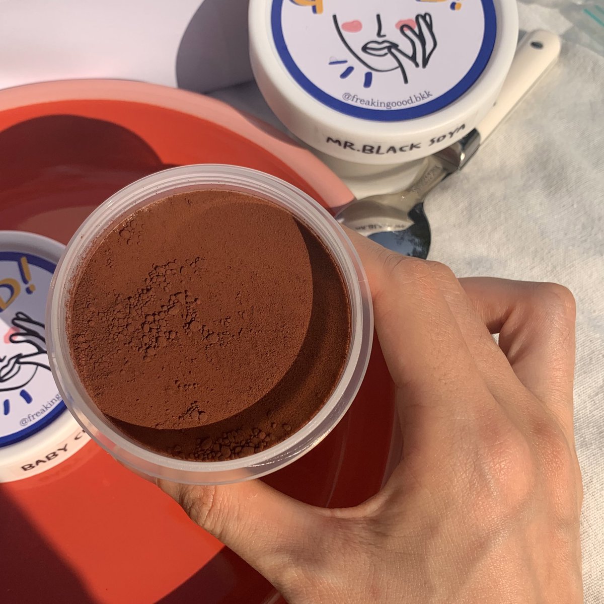 พุดดิ้ง chocolate 🍫🍮✨ อันนี้โคตรอร่อย เนื้อเนียนรสชาติกลมกล่อมไม่หวาน กินพร้อมกับผง cocoa ขมนิดๆดีเว่อร์ แล้วคือน้องเป็นพุดดิ้งน้ำเต้าหู้!! เหมาะมากสำหรับคนที่แพ้นมวัว บอกเลยว่าต้องสั่ง!! เราลองของร้าน @freakingoood มาทุกตัวแล้ว baby choco กับ soya love me คืออร่อยที่สุด