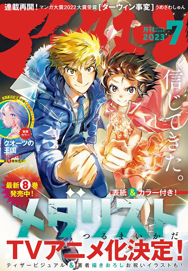 本日発売のアフタヌーン7月号はTVアニメ化決定の『メダリスト』が表紙&カラーで登場! 最新8巻も絶賛発売中!