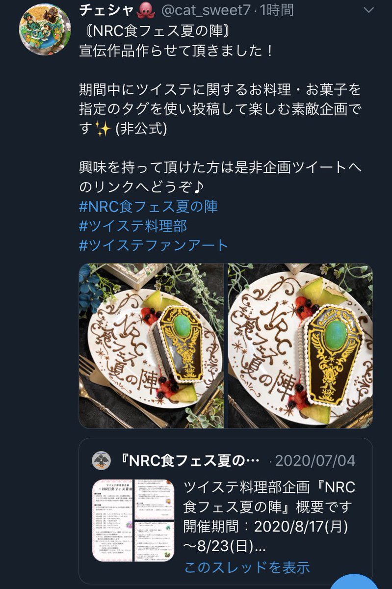 期間中にツイステに関するお料理・お菓子を指定のタグを使い投稿して楽しむ素敵企画です✨(非公式)