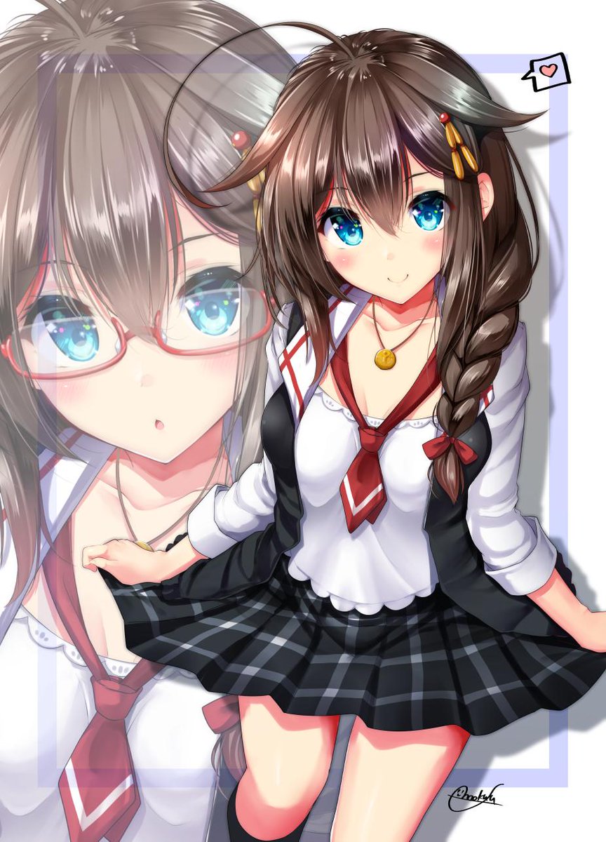 私服時雨描きました。めがね。