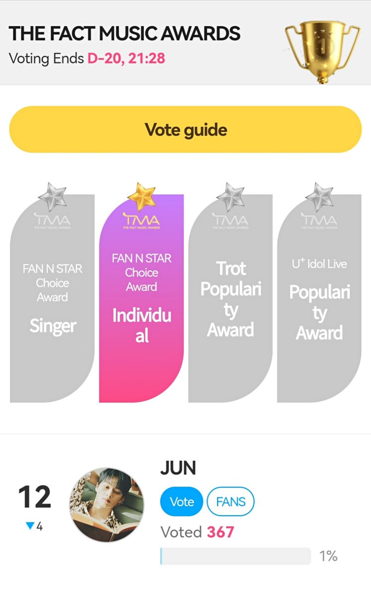 JUN is the only svt member nominated for TMA FAN N STAR Choice Award individual category!!!