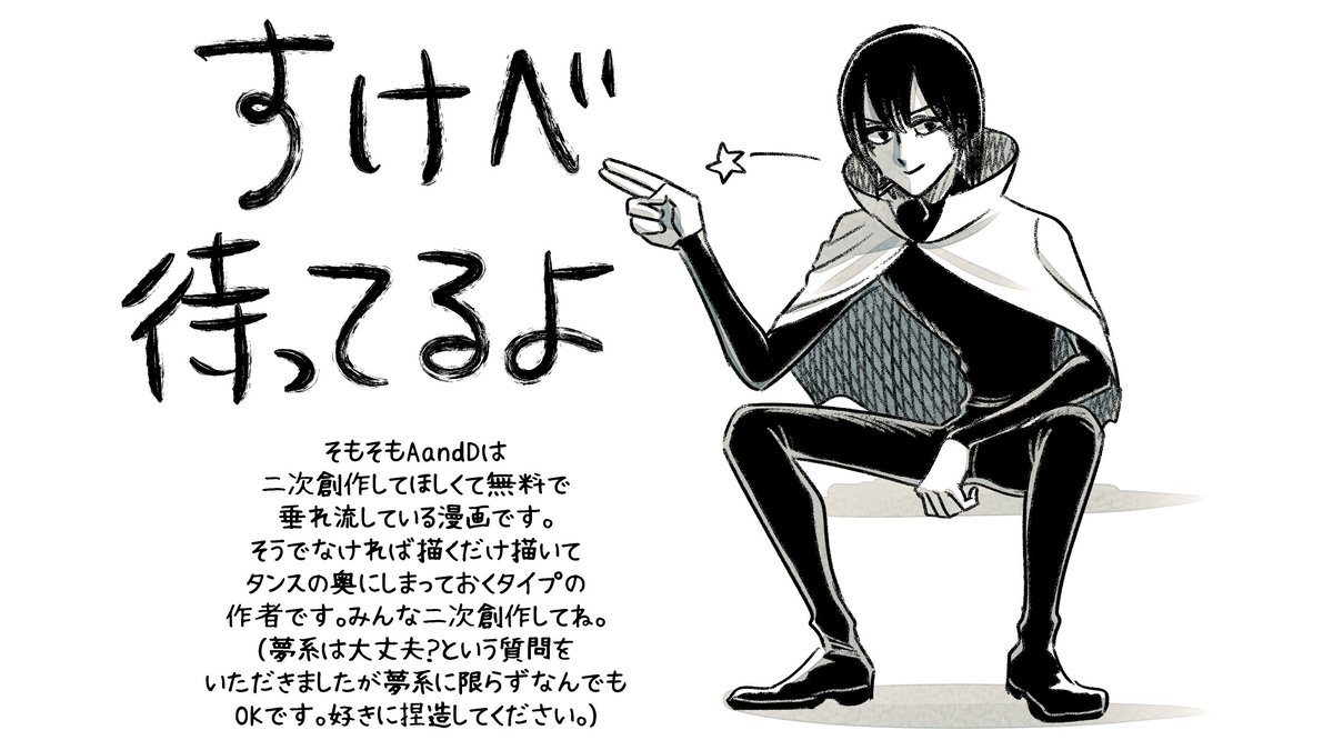 自分の漫画の二次創作が見た過ぎて作者自らが描いてしまった例がこれです。(あくまで二次創作の扱いであり公式設定ではありません) #AandD
