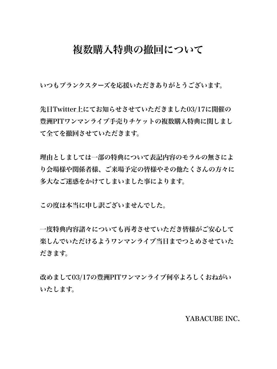 プランクスターズからの重大発表です