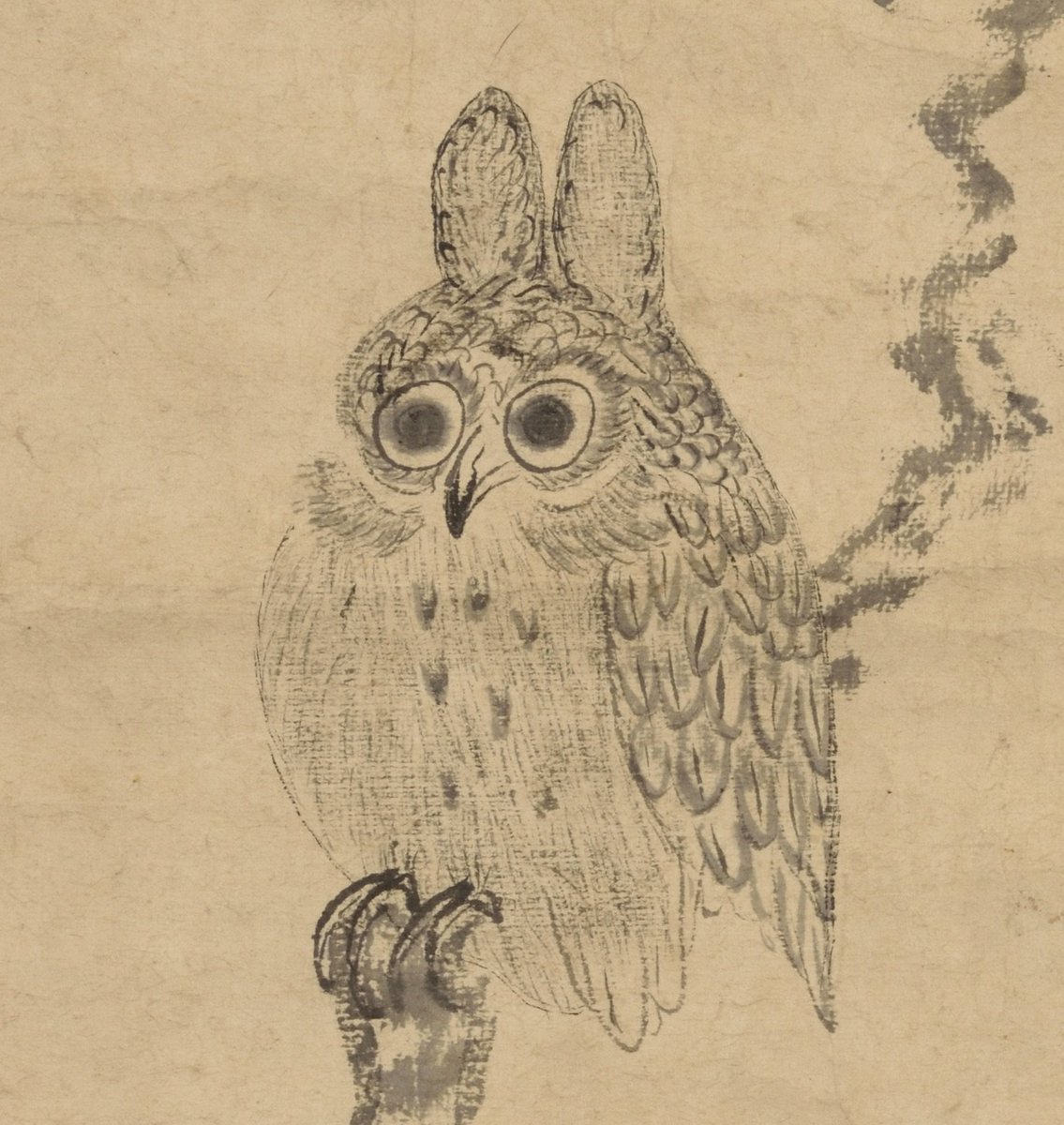 羽角のある方をミミズクと呼ぶことが多いそうですが、実は生物学的には同じ種類なのだそうです。写真は左が家光のミミズク、右が仙厓のフクロウ。