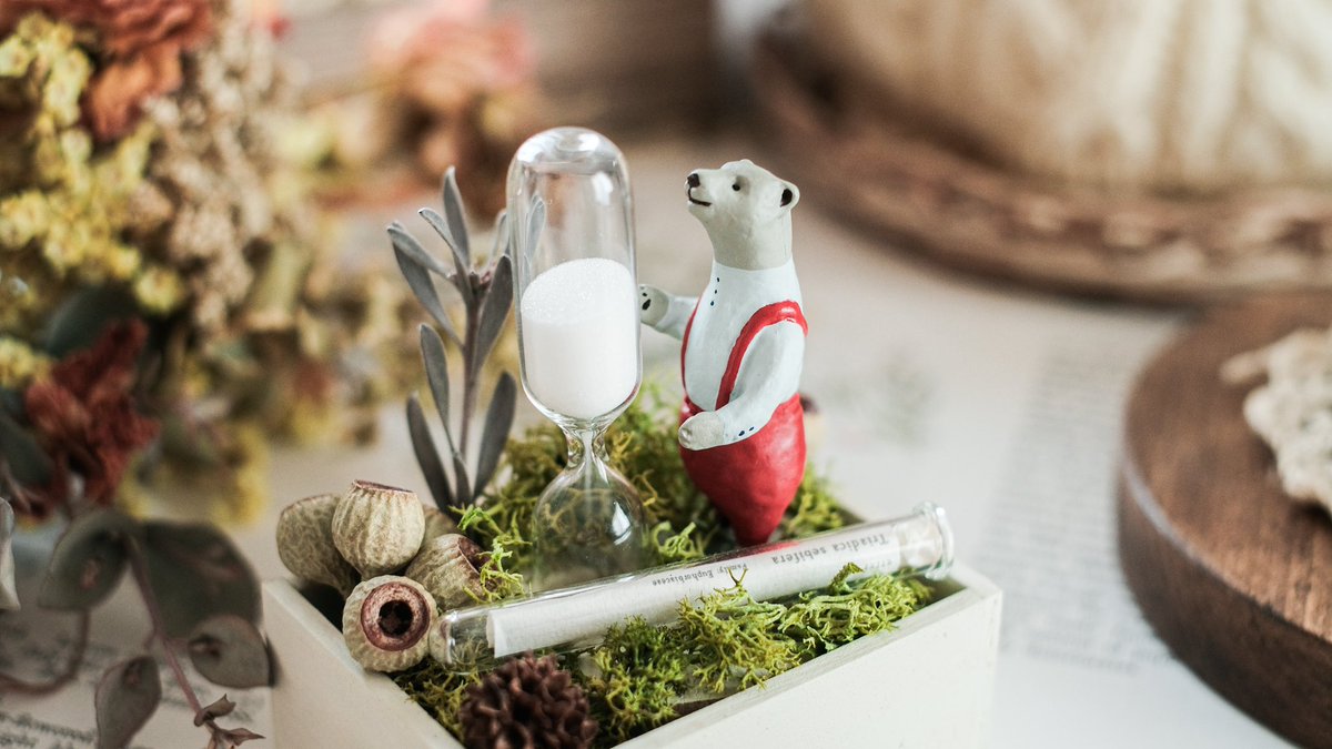 注文してから4ヶ月。 待ちに待った、愛らしい白熊の砂時計が我が家にやってきてくれました…。詰襟のシャツに赤いサスペンダーがお洒落な子。ティータイムの相棒です☕️