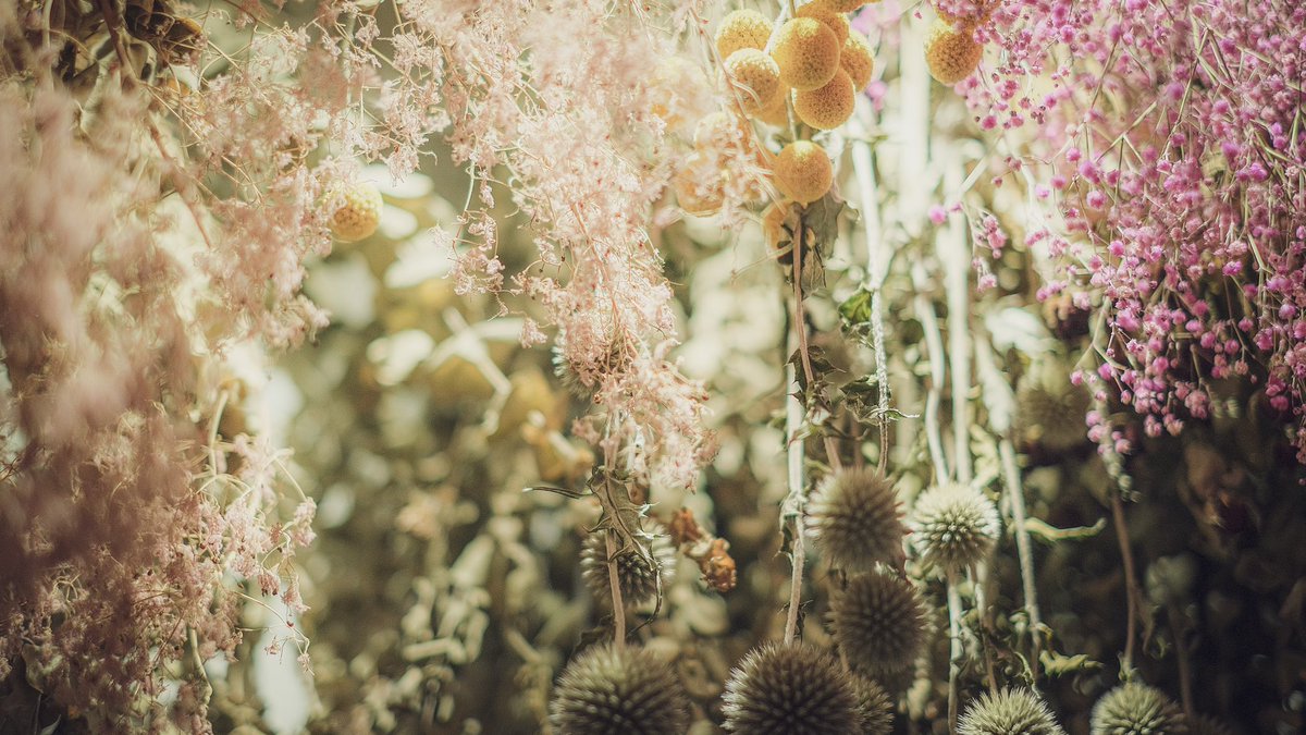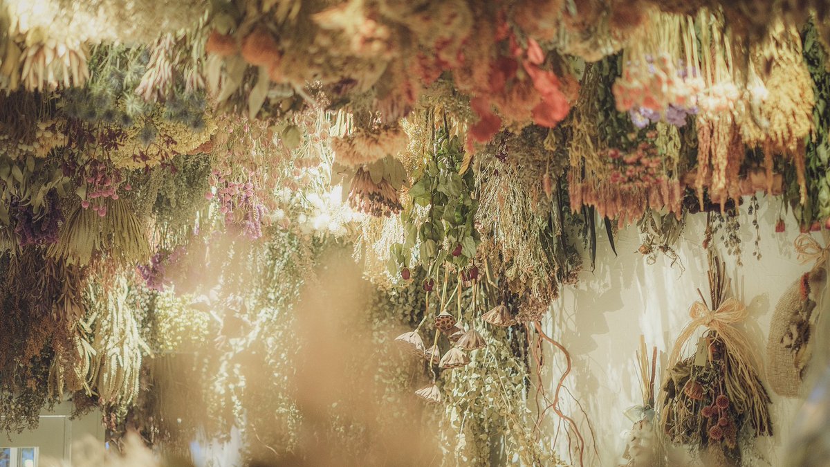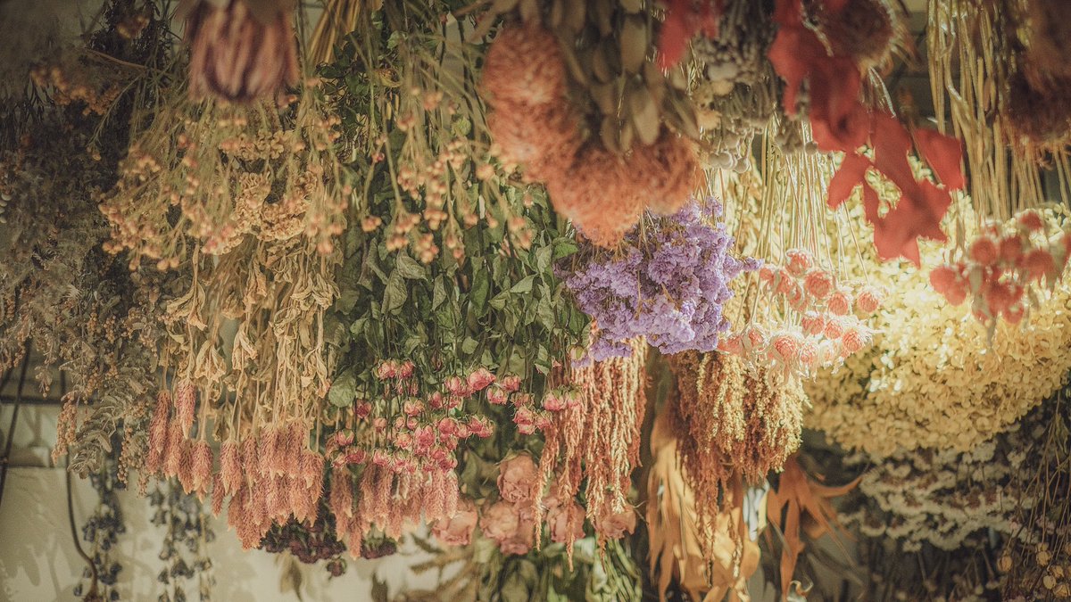 カフェ併設のドライフラワーショップ。まるで四季が織り重なった夢の中の花畑でした。