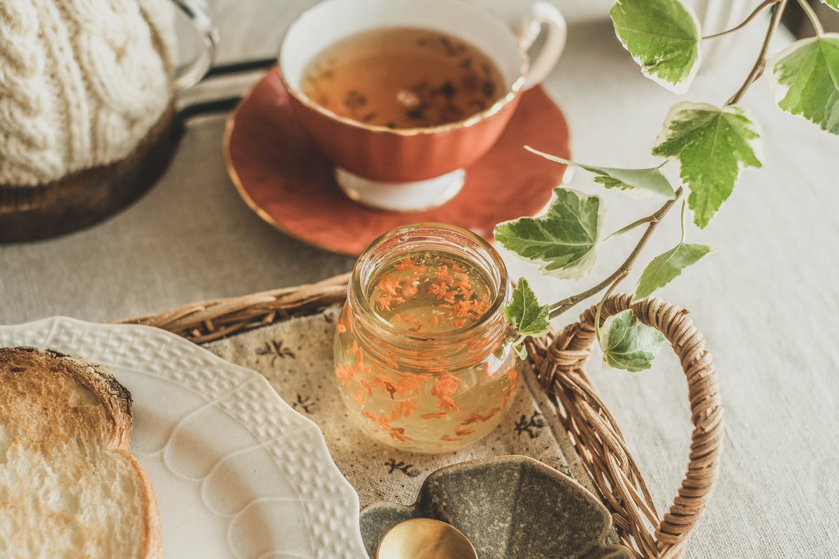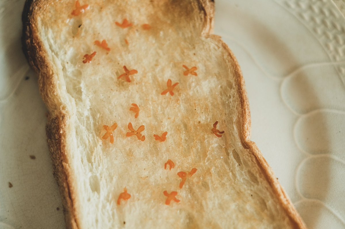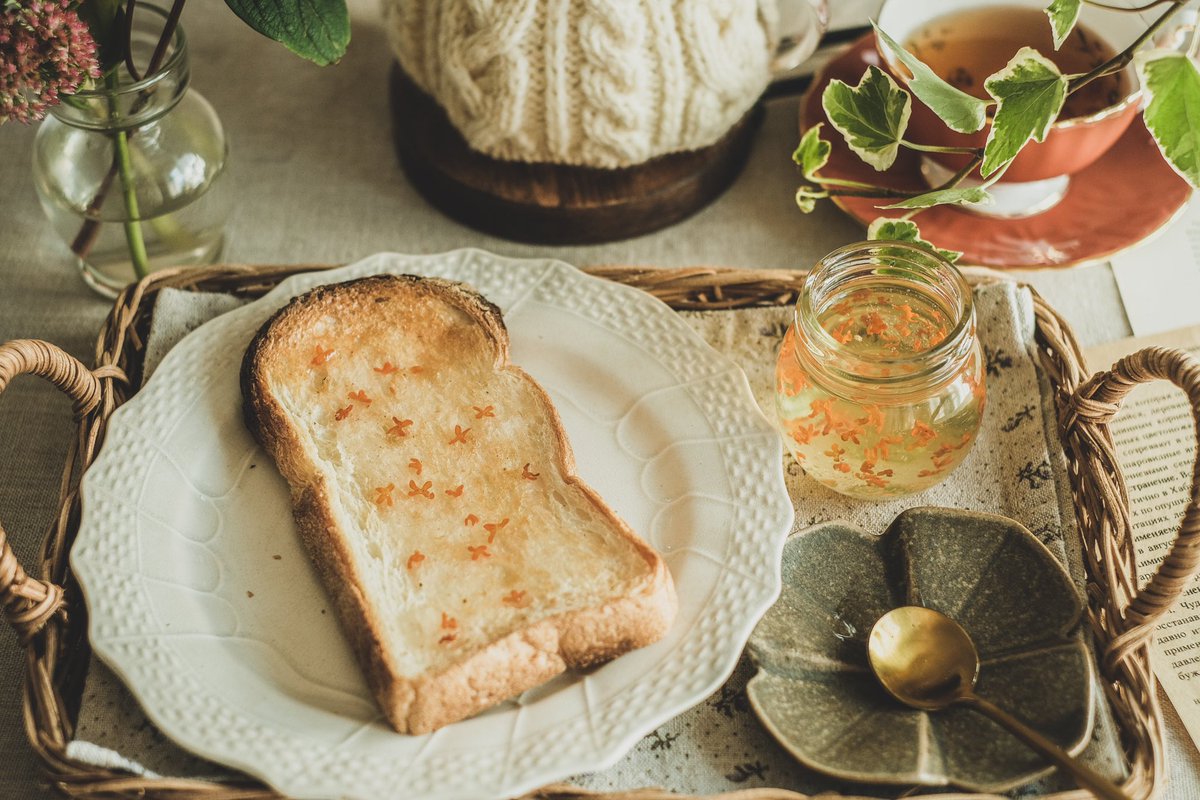 金木犀を散らしたトースト、秋の甘い香りを楽しむ至福の朝ごはん。