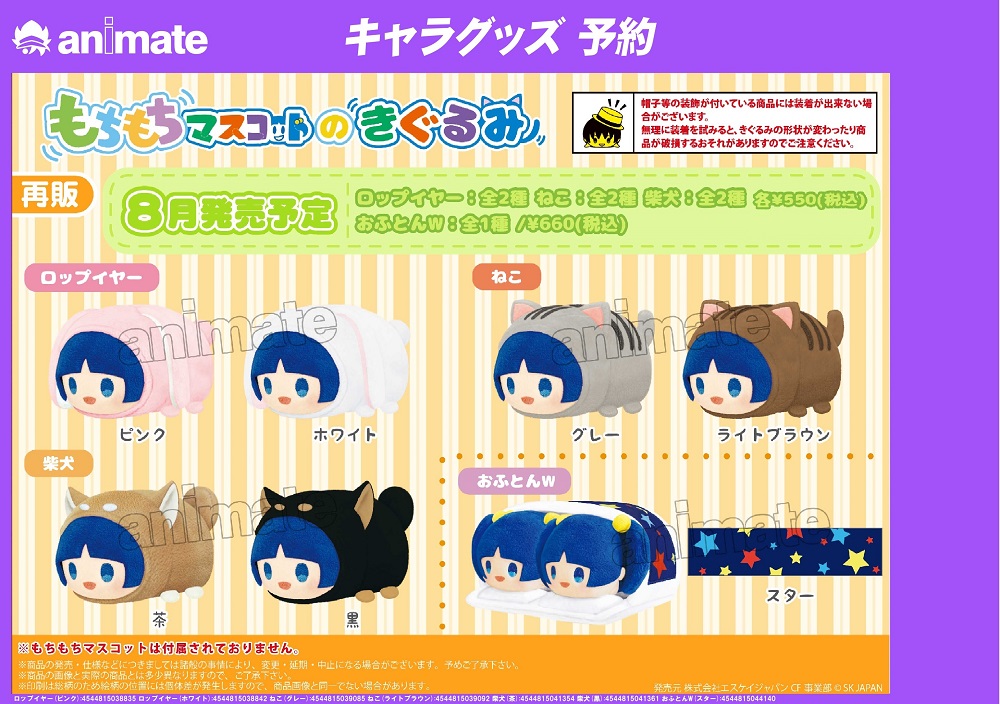 8月発売予定【もちもちマスコットのきぐるみ/おふとんW(再販)】がご予約受付開始!