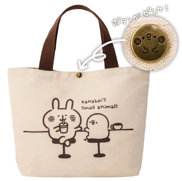 ムック本『カナヘイのゆるっとカフェBOOK』7/23発売です!店内紹介やおうちでできる再現レシピなど✨付録のトートバッグはボタンのとこがなんとピスケです✨どうぞよろしくお願いします☺️