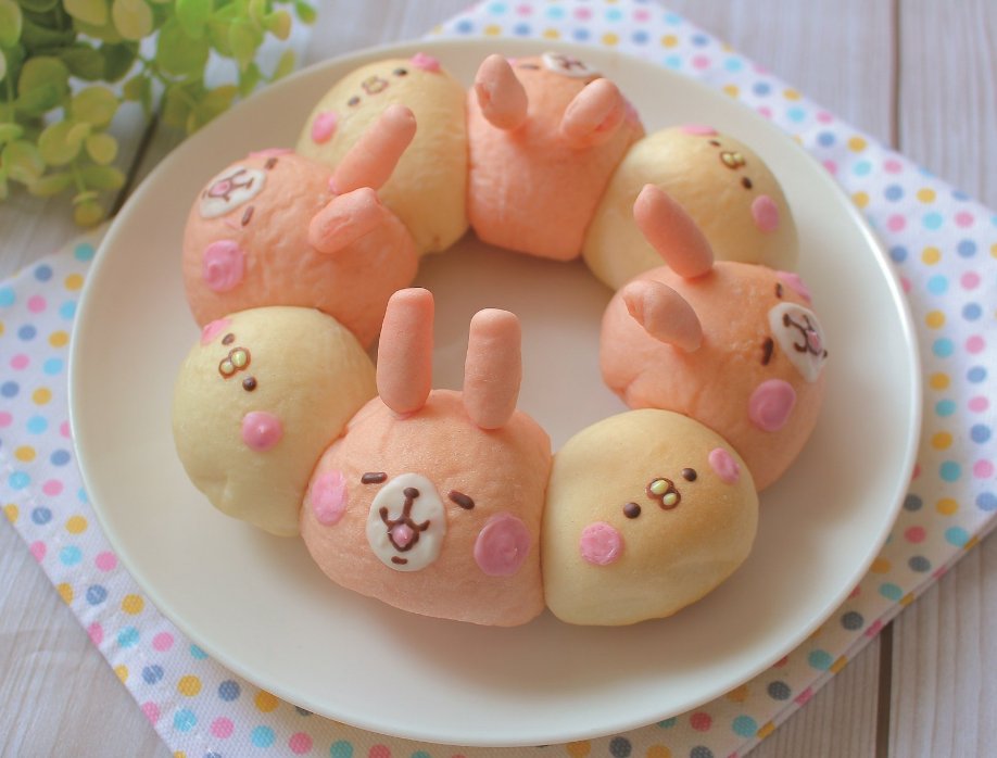 初のムック本…!嬉しい…!カフェメニュー以外にも、こういうピスケ&うさぎのちぎりパンレシピなど掲載していただいてます✨可愛く作っていただけて幸せ…😭✨ぜひ!