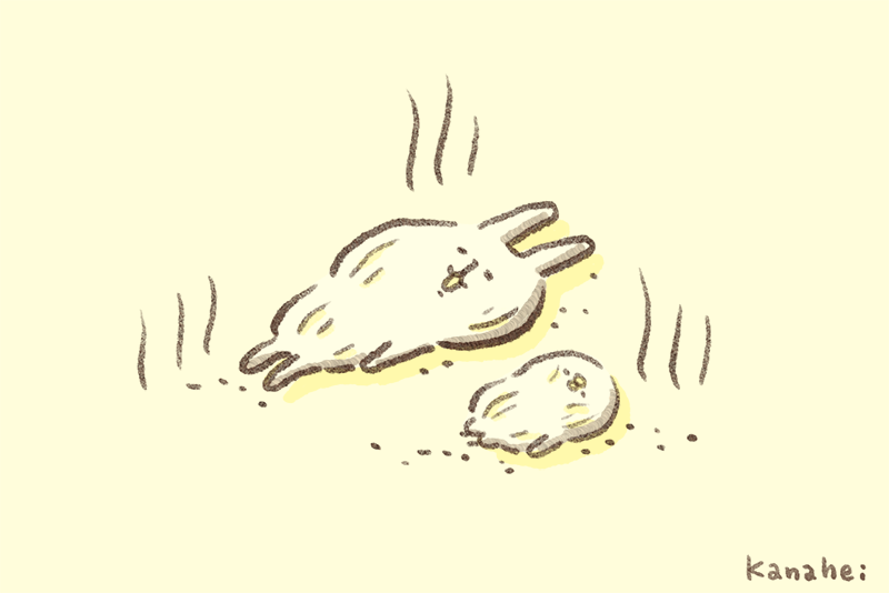 行列のできるカキ氷屋さんで慌てて食べて頭がキーンとなってるピスケとうさぎ #かき氷の日