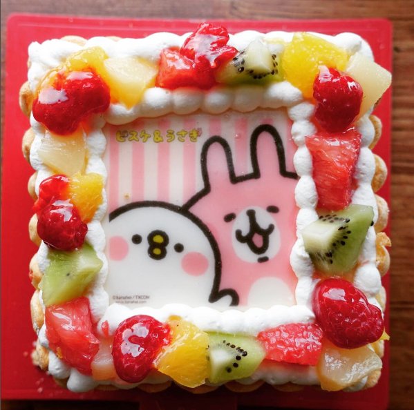 ピクトケーキさんで発売中のピスケ&うさぎケーキ✨冷凍ケーキなので冷凍庫で2週間保存可能✨解凍は冷蔵庫で8~10時間、ケーキもフルーツも絵の部分も美味しい…!お祝いなどにぜひ😋💕 pictcake.jp/chara/kanahei