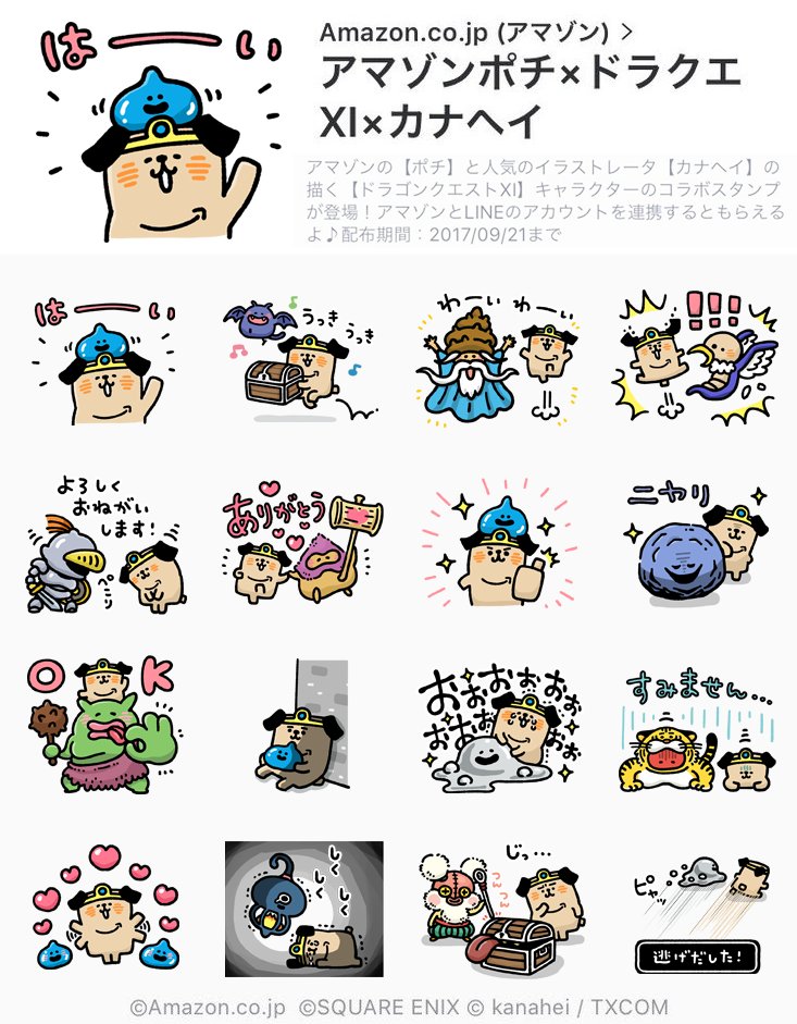 ■Amazonポチ×ドラクエ11×カナヘイのコラボ無料スタンプ