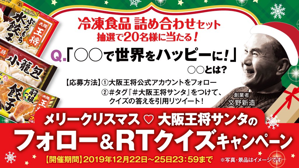 🎄メリークリスマス💘大阪王将サンタのフォロー&RTクイズキャンペーン🎄