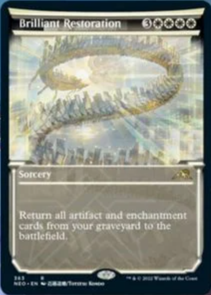 あなたの墓地にある全てのアーティファクトとエンチャン卜カードを戦場に戻す。