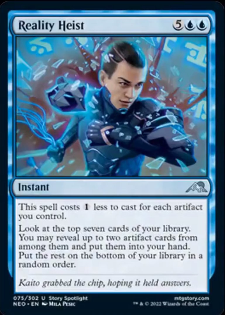 あなたのライブラリーの上から7枚のカードを見る。あなたはその中から最大2枚のア一ティファク卜カードを公開し、手札に加えてもよい。残りをライブラリー下無作為 twitter.com/TeferiMagic/st…