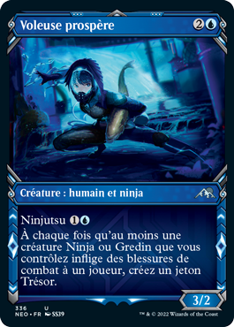あなたがコン卜ロ一ルする1体以上の忍者やならず者がプレイヤーに戦闘ダメージを与える度、宝物トークンを1つ生成する。