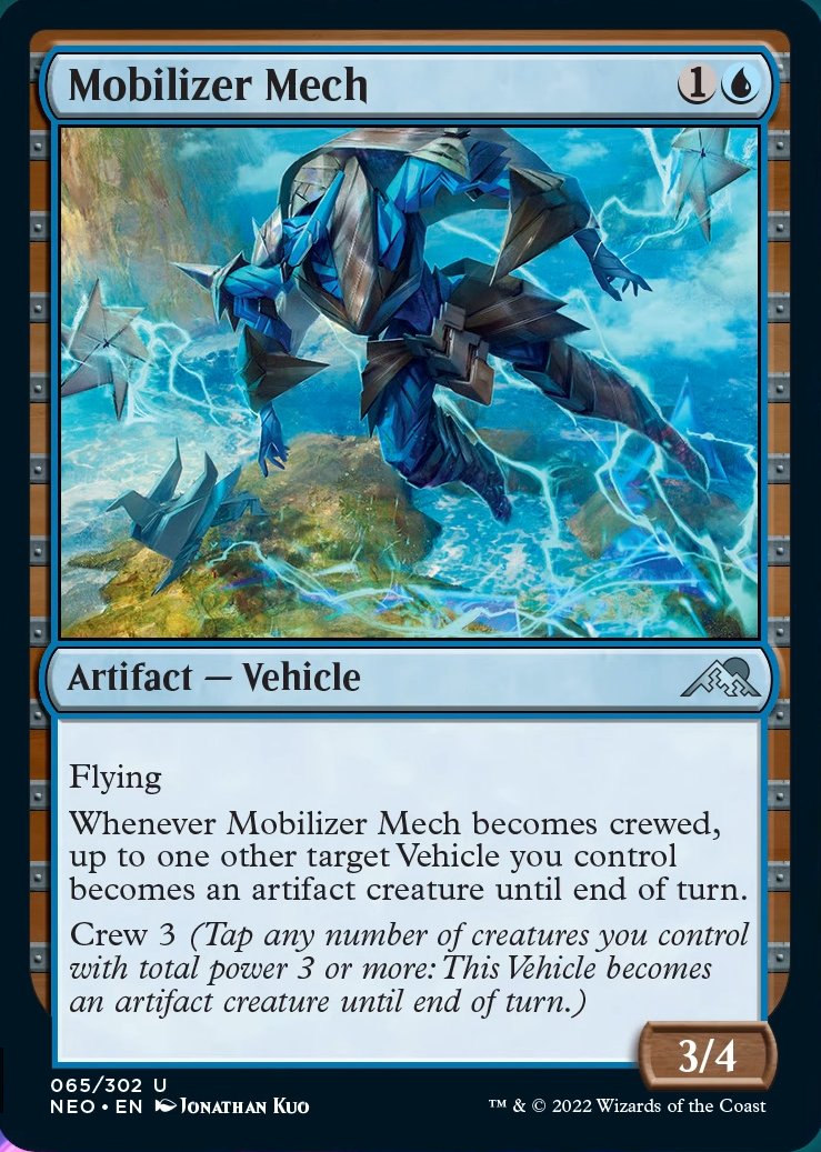 これが搭乗された状態になるたび、あなたがコン卜ロ一ルする他の機体を最大1体対象とする。それはターン終了時までア一ティファク卜クリ一チャ一になる。